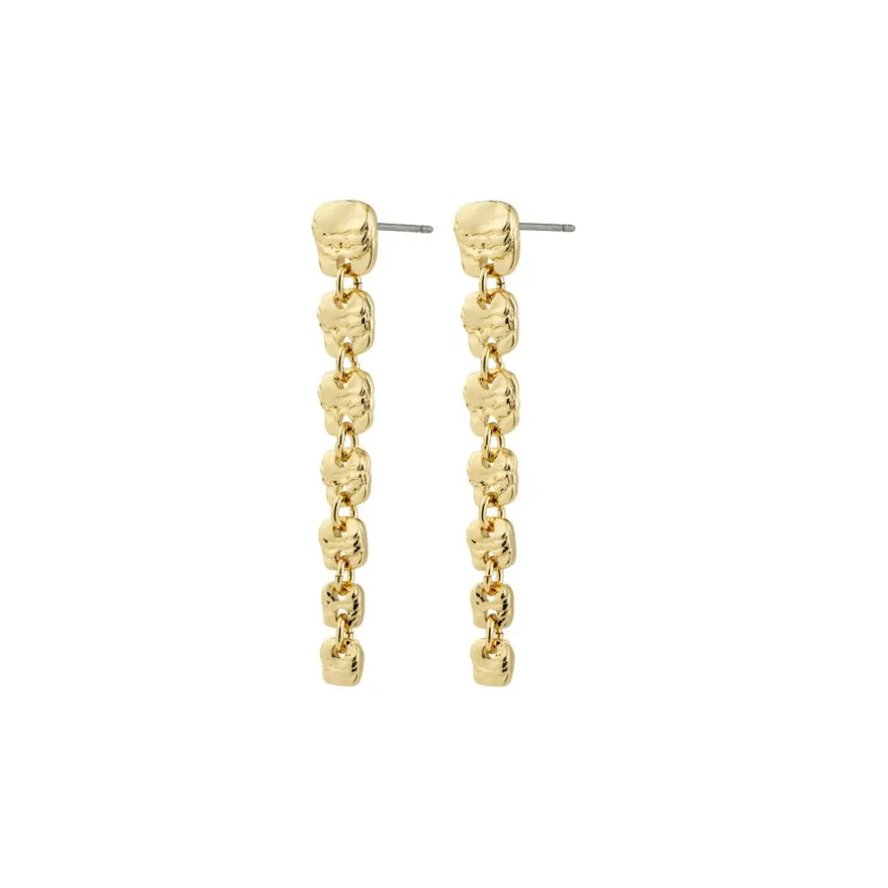 De guldbelagte SENSE øreringe fra Pilgrim kombinerer tidløs coolness med effortless styling.