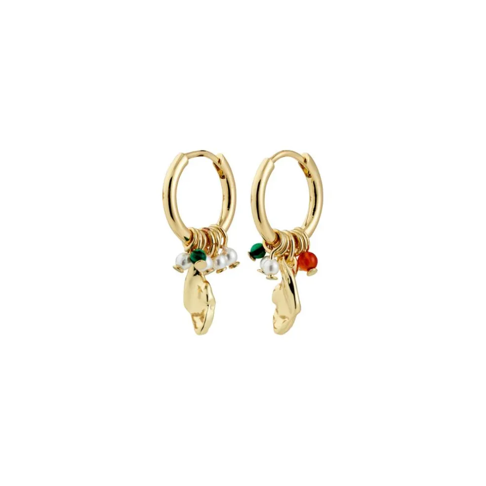 De små hoops kommer med letanvendelige kliklåse og bærer organiske vedhæng samt halvædelstenene Rød agat og Malachite, der tilfører et mix af tekstur og shine.