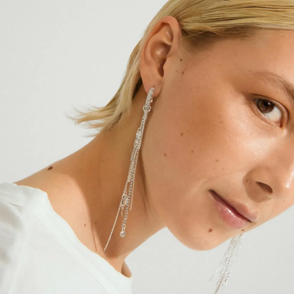 De sølvbelagte DRUE-øreringe fra Pilgrim er det ultimative go-to, når du vil tilføre dit look et hint af effortless luxury. De små hoops med Preciosa-krystaller smelter sammen med en kaskade af kæder og fine vedhæng, der skaber et legende, free-minded udtryk med en breezy feel.