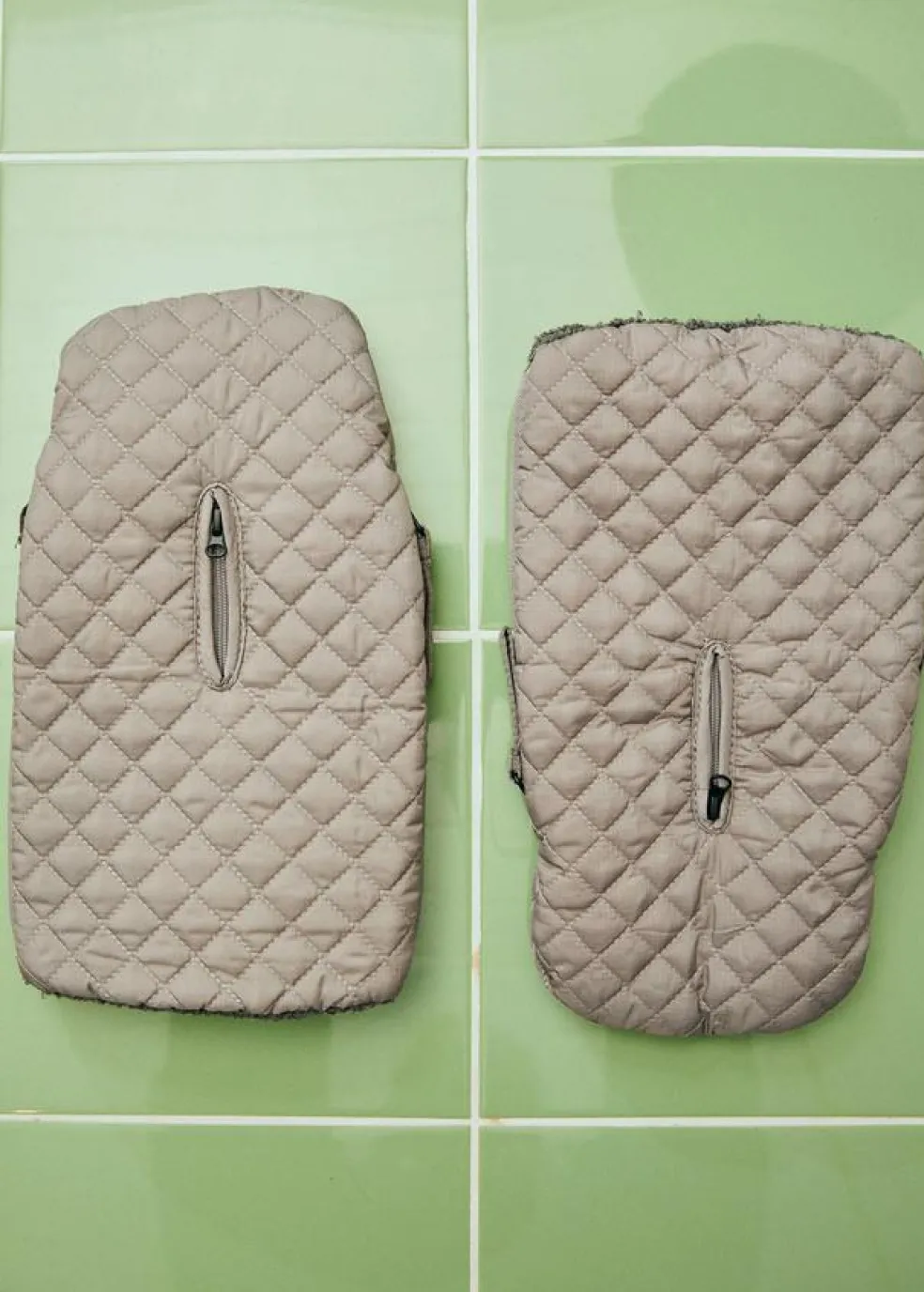 Handskerne har en lynlås i hver side, så de nemt kan sættes på styret af vognene.
