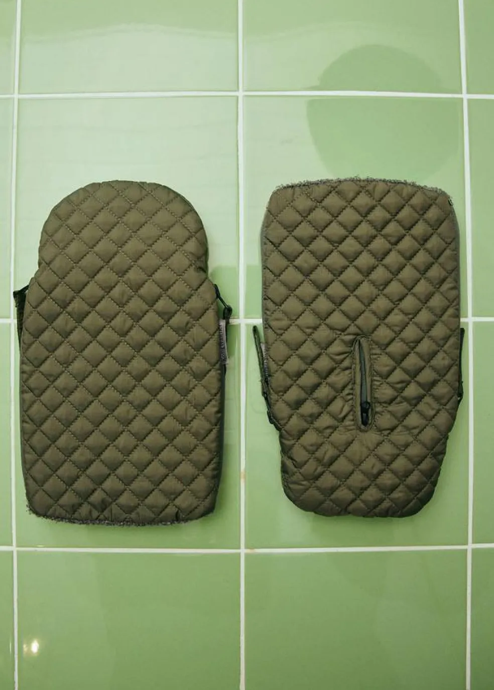 Handskerne har en lynlås i hver side, så de nemt kan sættes på styret af vognene.