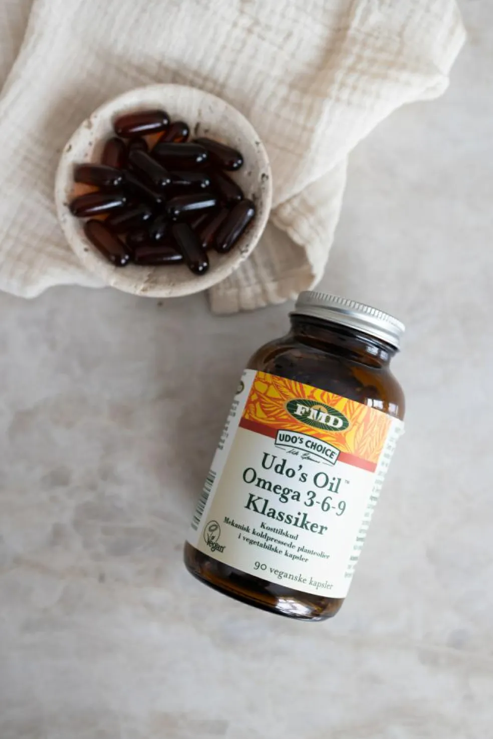 Udo’s Choice® Ultimate Oil Blend er praktisk tilgængelig i veganske kapsler. Dette gør det muligt at indtage nøjagtig den samme høje kvalitet af olie, når det ikke er muligt at indtage den flydende olie f.eks. når man er på rejse.