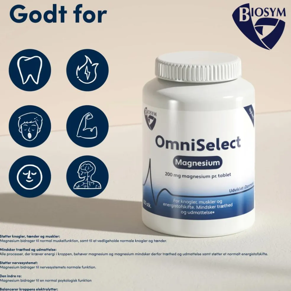 Ligesom Biosyms øvrige kosttilskud, er OmniSelect Magnesium udviklet i Danmark af Biosyms specialister.