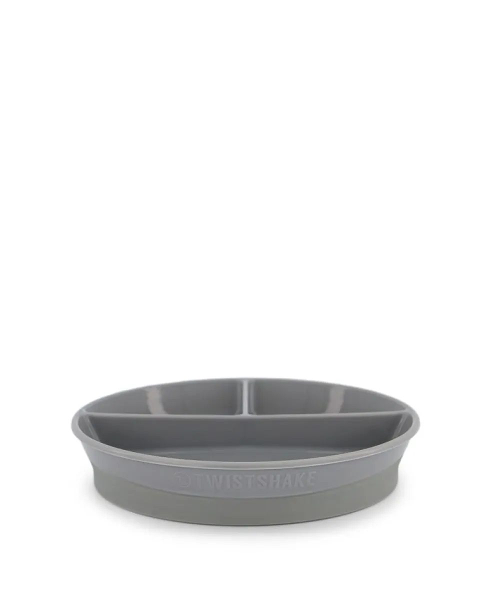 Twistshakes opdelte tallerken har en skridsikker bund, der holder tallerkenen på plads under måltidet.