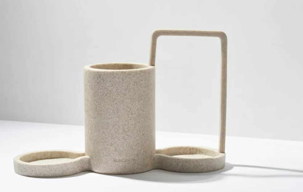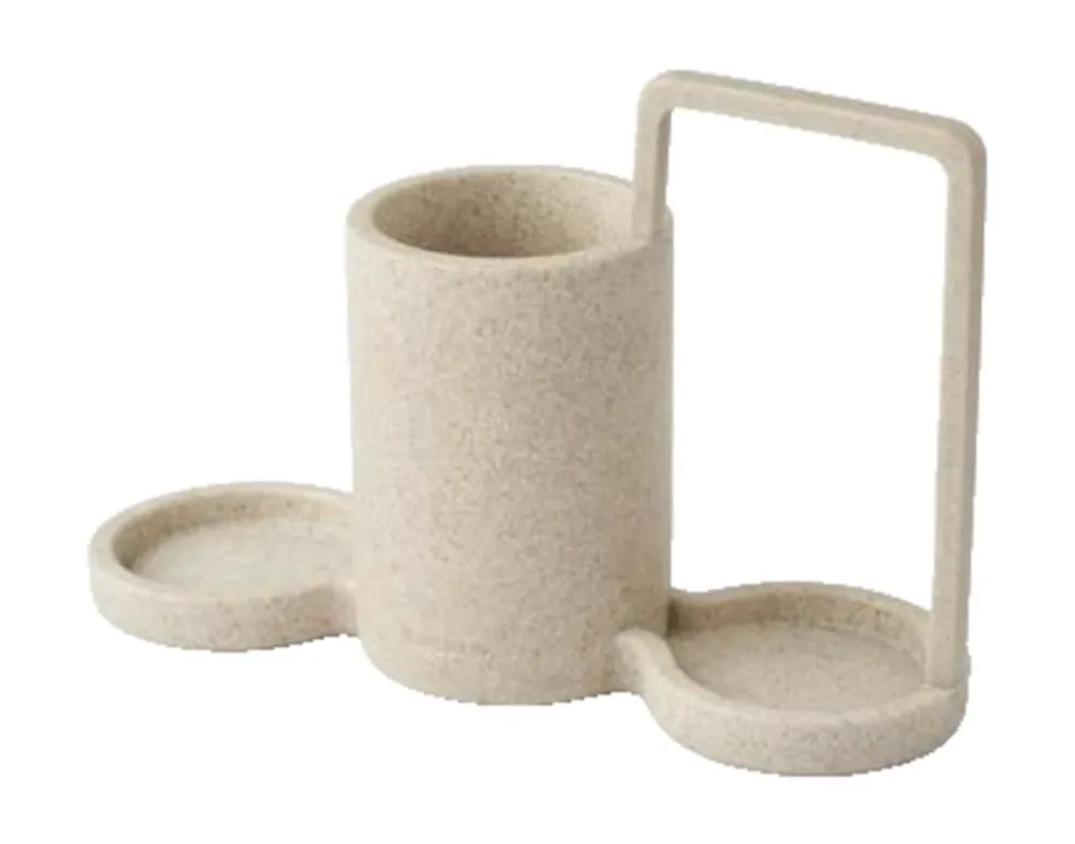 Denne opvaskesæbeholder i sandsten er et alt-i-et opvaskesæt, der sikrer plads til alt, hvad du behøver ved din køkkenvask.