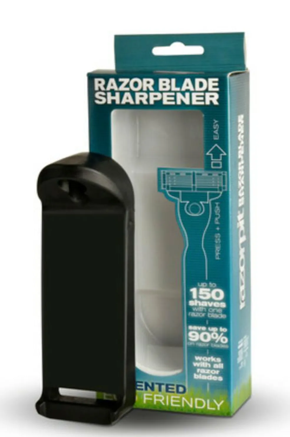Barberblade føles sløve fordi der danner sig en hinde af hud- og hårrester på skæret. Razorpit renser og sliber effektivt belægningen af skæret, hvorved du kan bruge dit barberblad i månedsvis.
