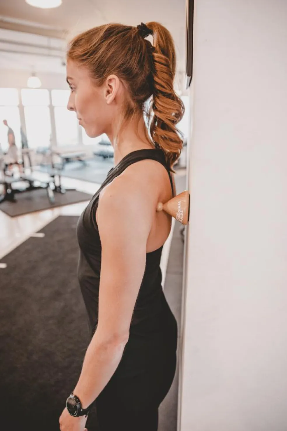 For at behandle dine dybe muskelsmerter, smertepunkter, spændinger, myofasciale triggerpunkter og hårde muskler, placér TMX TRIGGER ORIGINAL PLUS enten på gulvet eller på væggen ved hjælp af den integrerede klæbepude.