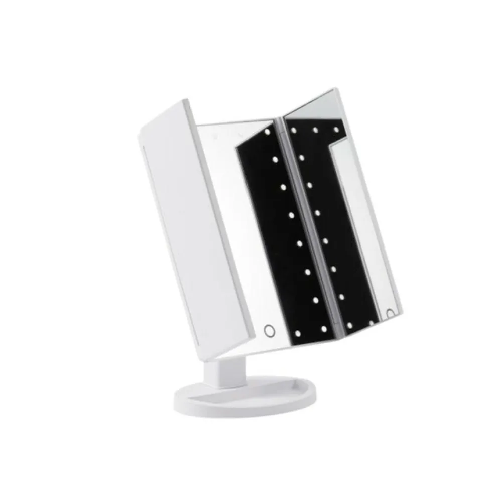 Dette sammenfoldelige spejl består af tre spejle, der giver et perfekt panorama-syn over hele dit ansigt. 21 lyse, bløde og justerbare LED-lamper giver en perfekt reflektering af farve og optimalt lys til påføring af makeup eller til at arbejde med dit brow game.