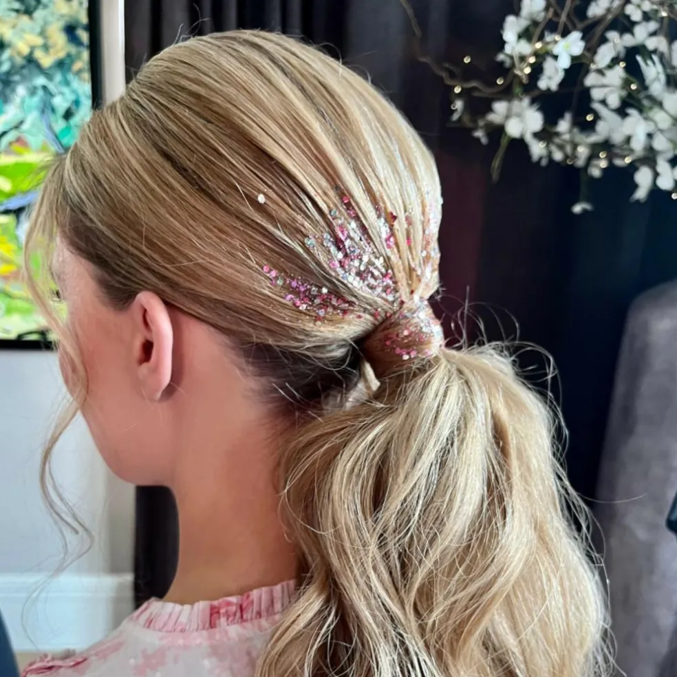I håret:Bland øko-glimmer med en stærk hårgel. Påfør straks blandingen i håret ved hjælp af en smal makeup-børste, og stryg det på. For at fjerne det, vask det ud med shampoo og varmt vand.