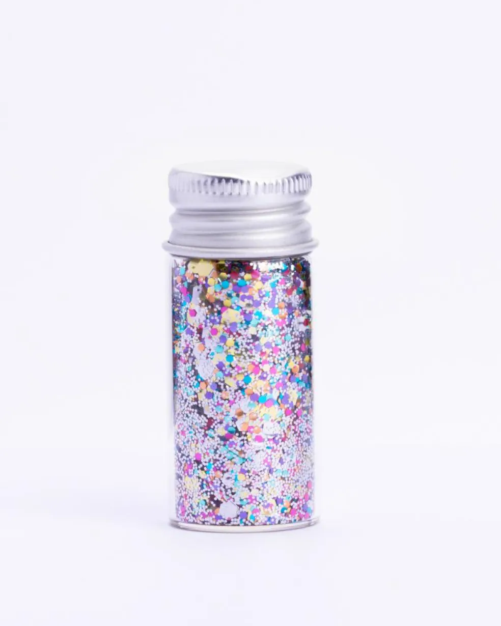 Som navnet antyder, er denne farverige blanding en smuk kombination af alle regnbuens farver, med sekskantede glimmerflager i både store og små størrelser.