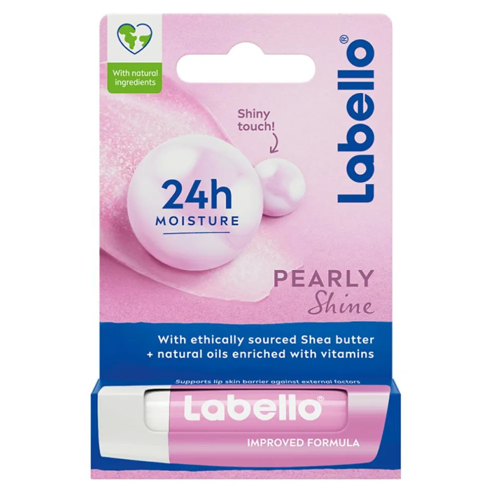 Labello Pearl & Shine plejer dine læber og gør dem bløde og smidige. Indeholder hudens eget hydramin og vindruekerneekstrakt, der hjælper læberne til at genfugte sig selv. Giver læberne volumen med et skær af perlemor. Indeholder plejende jojobaolie og sheabutter.