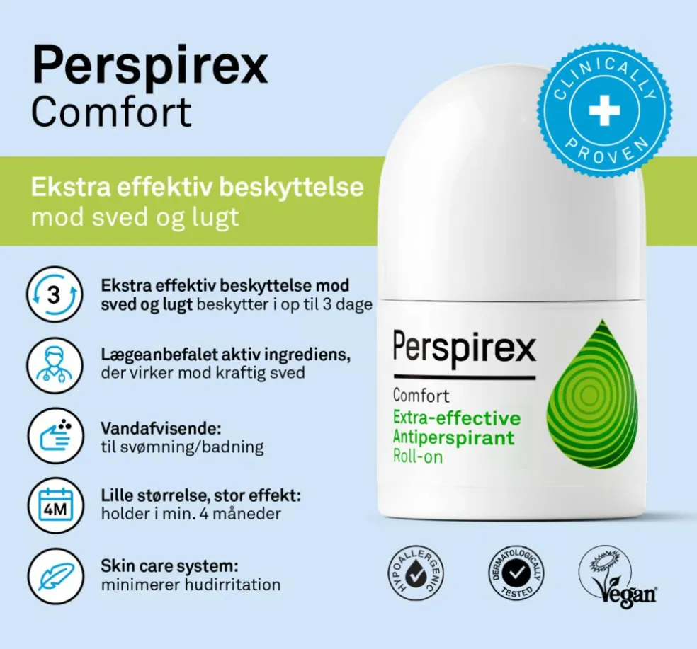Fås også til kraftigere og alvorligere lugt- og svedgener samt som antiperspirant lotion til hænder og fødder.