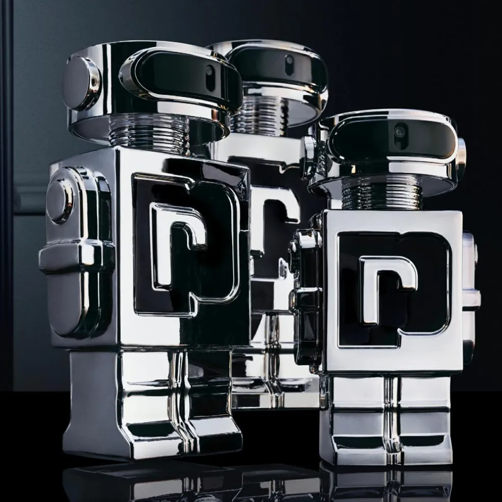 PHANTOM EDT fanger alles opmærksomhed med sit dristige design og udstråler magnetisk maskulinitet med sit skarpe, edgy udtryk. Flakonen står som et stærkt ikon: elegant sølv møder sort, glansfuldt glas, kronet med et gennemsigtigt monogram. Et trofæ for dem, der tør bryde reglerne.