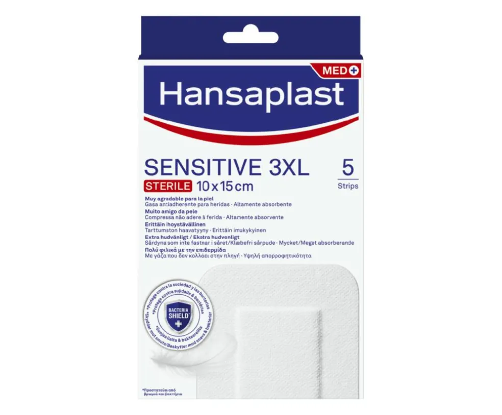 Hansaplast Sensitive 3XL plastre er steril sår bandage til vandtætte beskyttelse of større or post-operative sår.