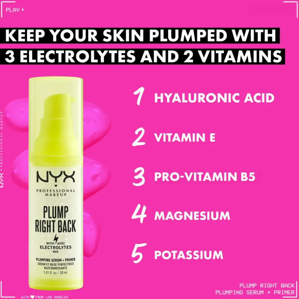 Denne superprimerserum med 3 elektrolytter og 2 vitaminer (hyaluronsyre, E-vitamin, provitamin B5, magnesium og kalium) efterlader huden med en fugtmættet følelse og et fyldigt look samtidig med at den forlænger din makeups holdbarhed til hele dagen.