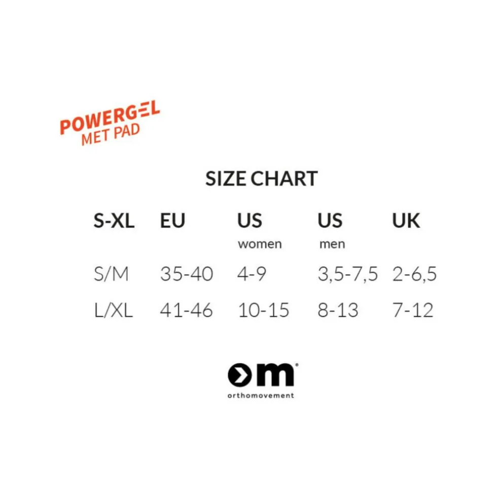 Powergel Met Pad er udviklet med Ortho Movement-teknologi til at separere mellemfodens skaft, fordele trykket jævnt og polstre mellemfodens led.