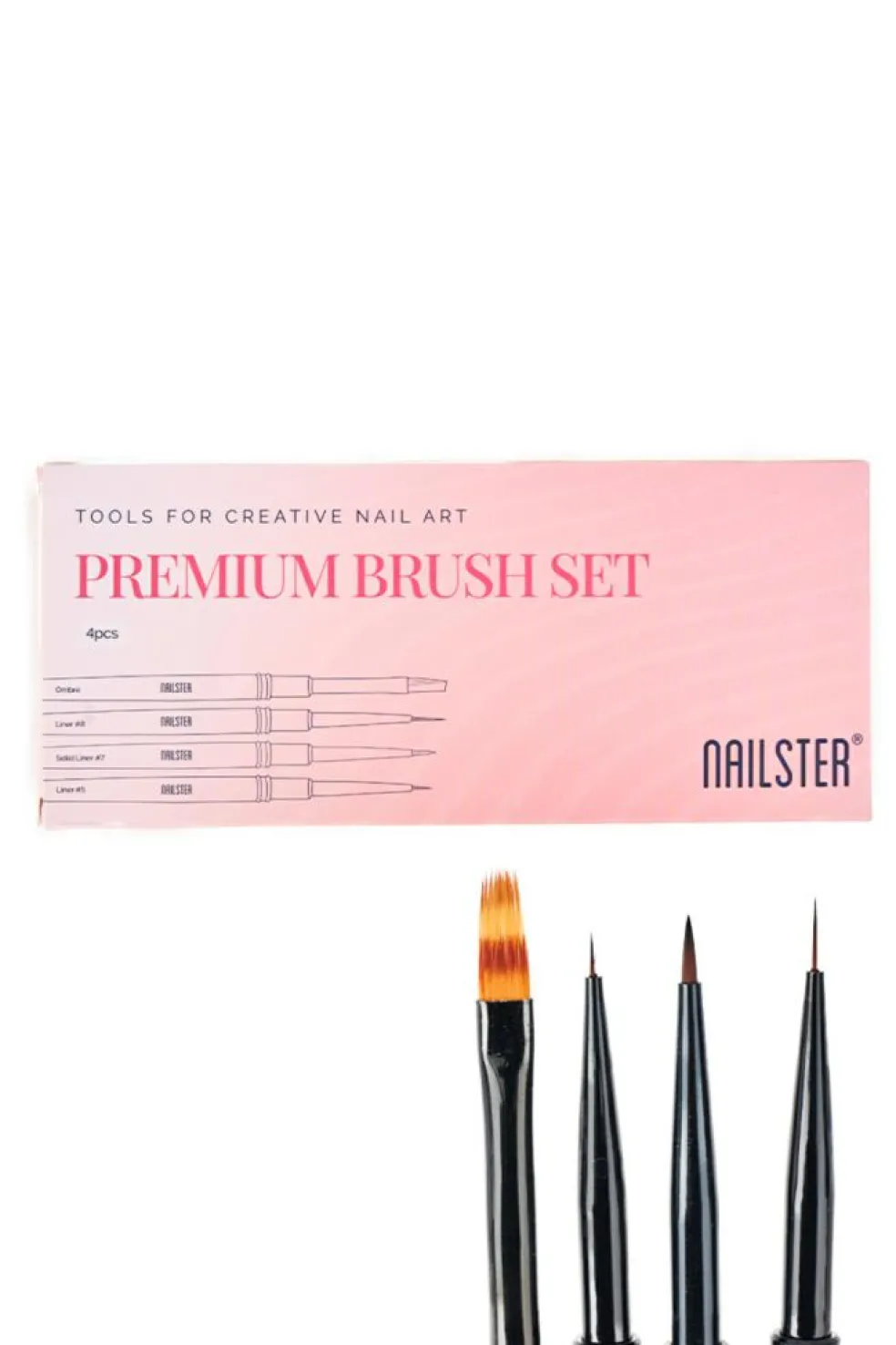 Løft dit negledesign til et nyt niveau med Nailster Premium Brush Set – det ultimative værktøjssæt til enhver neglekunstner. Dette eksklusive sæt indeholder fire essentielle neglebørster, omhyggeligt udvalgt for at dække alle dine kreative behov, fra fine linjer til bløde overgange.
