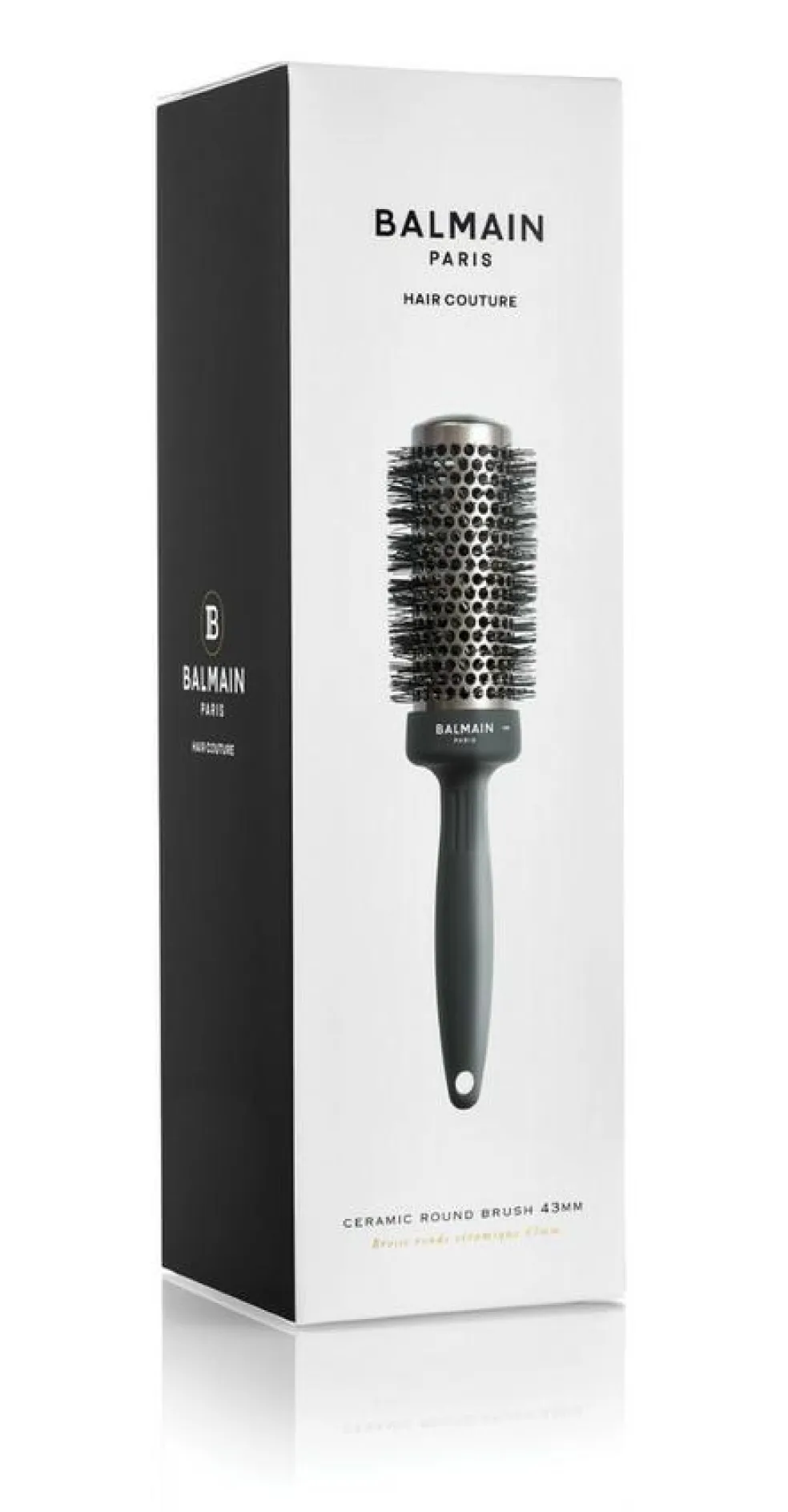 Balmain Paris Hair Couture’s Professional Ceramic Round Brush 43mm Black er designet til at skabe volumen og en silkeblød finish i mellemlangt til langt hår. Den keramiske cylinder udsender negative ioner, der forsegler hårstrået, lukker beskadigede skællag og udglatter spaltede spidser. Små åbninger i cylinderen sikrer optimal luftcirkulation, hvilket resulterer i et skinnende og glat resultat. Børstens ergonomiske design og fleksible nylonbørster gør det nemt at style håret, mens den perforerede, keramisk belagte cylinder sikrer jævn varmefordeling under føntørring.