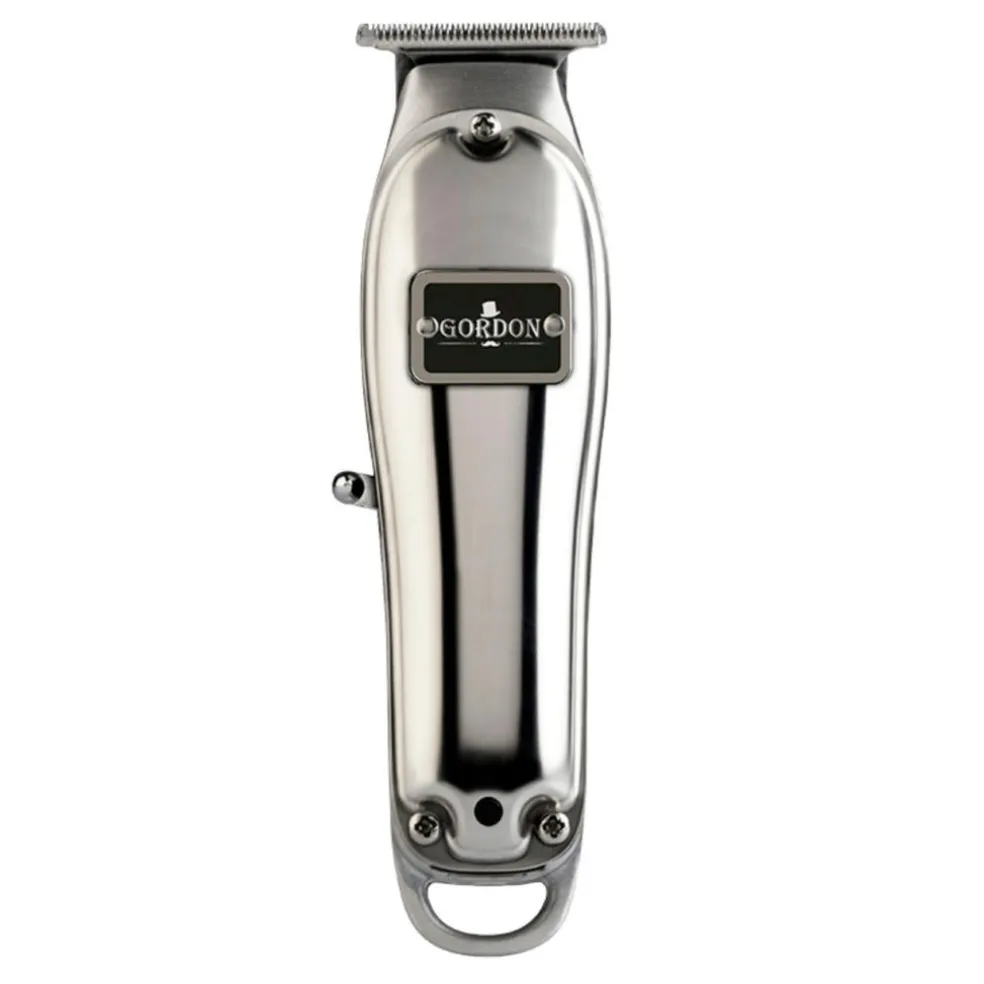 Gordon Aluminium Hair Trimmer B508 er en lille kraftig genopladelig klippemaskine som kan benyttes både med og uden kabel. Aluminium Hair Trimmer har et vintage design og moderne klippeteknisk performance. En flot maskine med aluminium belægning. Der er fokus på barberens behov og klippemaskinen er udført i et robust, holdbart materiale med en kraftig motor. Maskinen har et t-formet klippehoved, hvilket gør den velegnet til at lave detaljer, afsluttende finish og tegninger. Den kulstoffattige stålklinge (440C high carbon rustfrit stål) giver perfekte snit og sikrer holdbar klipning. Der medfølger 3 afstandskamme fra 2 til 4 mm. Desuden medfølger er en lille rengøringsbørste og olieflaske.