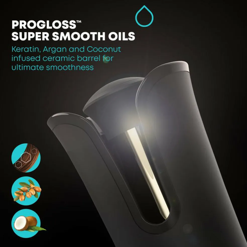 – Progloss™ super glatte olier Keratin, Argan og Kokosolie infunderet keramisk tromle for ultimativ glathed