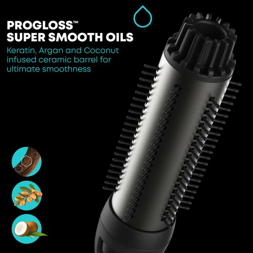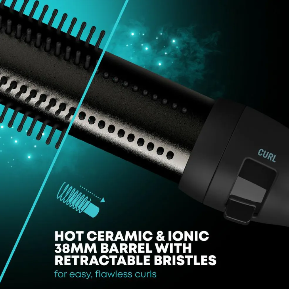 Denne varme stylingbørste er designet med vores unikke, perfekte endeudløsersystem, med indtrækkelige børster, for lydefri styling og fejlfrie resultater.