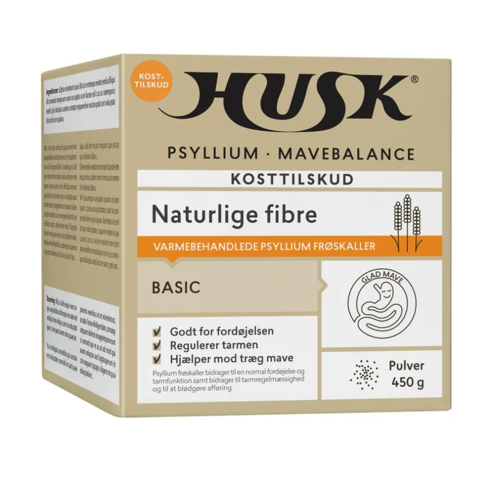 Bemærk: Varmebehandling i fremstillingen af HUSK® Psyllium Mavebalance kan gøre at produktet er lidt mørkere i farven