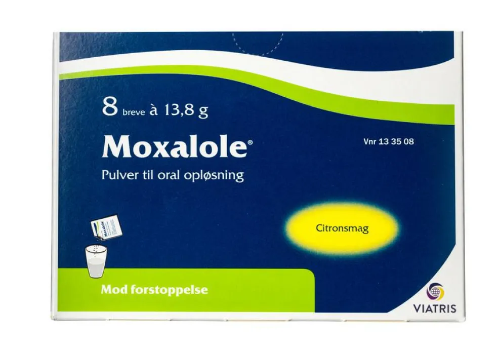 Macrogol 3350 binder vand og giver derved et øget tarmindhold, som bevirker at tarmbevægelserne normaliseres. De fysiologiske konsekvenser er øget bevægelse af blødgjort afføring og tømningen af tarmen lettes. Moxalole indeholder salte for at undgå forstyrrelser i kroppens normale salt- og væskebalance. Kontakt lægen eller sundhedspersonalet, hvis du får det værre, eller hvis du ikke får det bedre efter 2 uger. Hvis du tager Moxalole for hård og indeklemt afføring, skal du følge lægens instruktioner. Lægen kan have givet dig Moxalole for noget andet. Følg altid lægens anvisning.