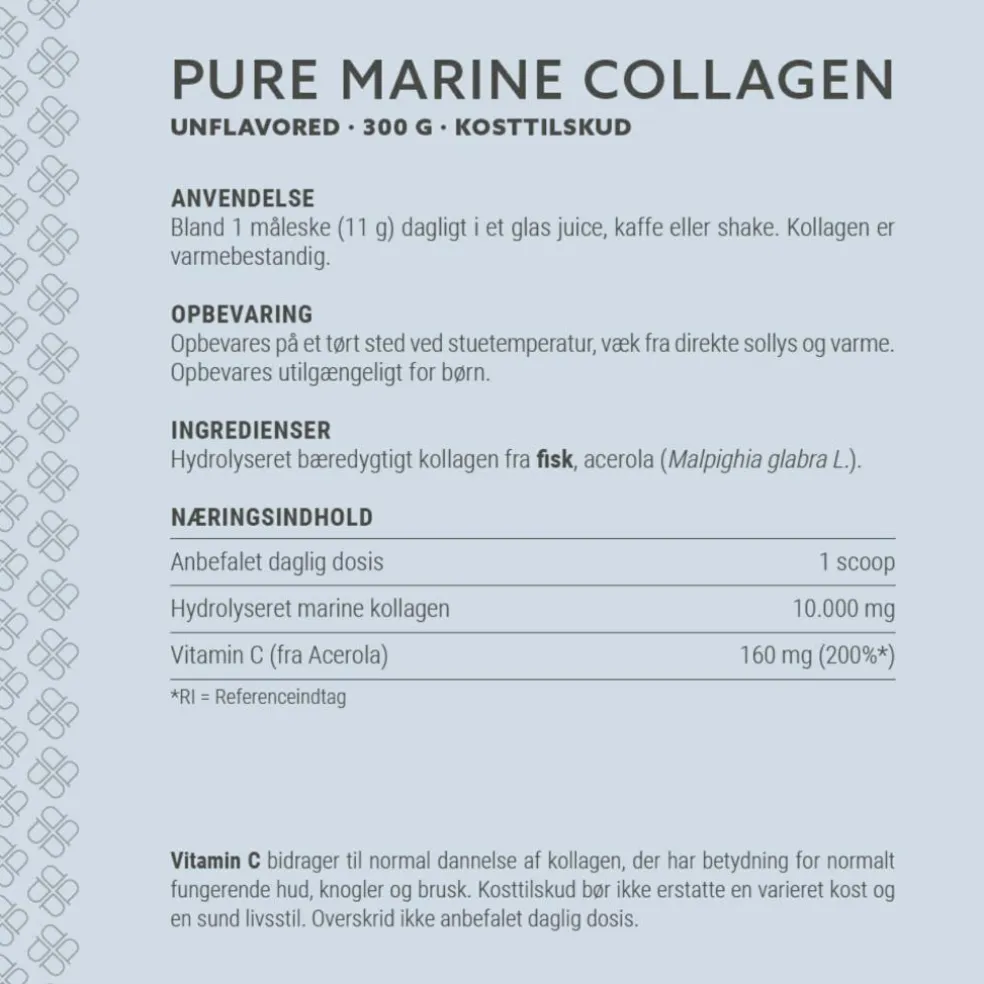 | Hydrolyseret marine kollagen | 10.000 mg | – |
