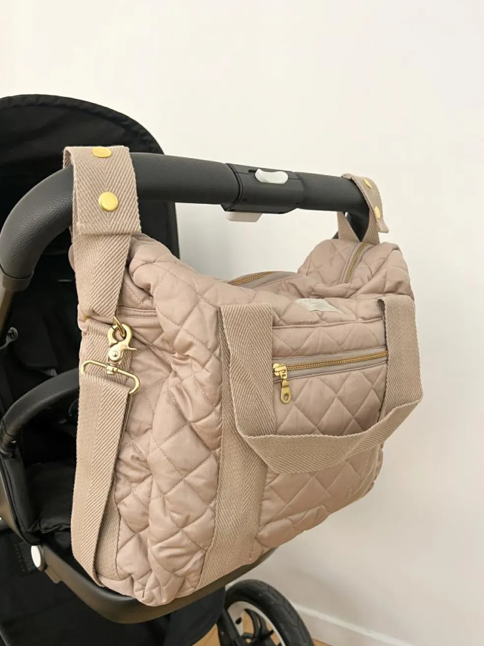 Der medfølger to små stropper, så du kan fastgøre Pusletasken til styret på barnevognen eller klapvognen.