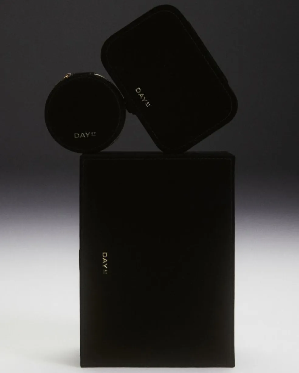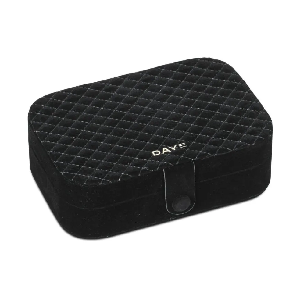 Det er udformet i et let og blødt materiale med et sæsonpræget fløjl finish. Smykkeskrinet kommer i en simpel firkantet form med DAY ET logoet i et guld look for et luksuriøst statement.