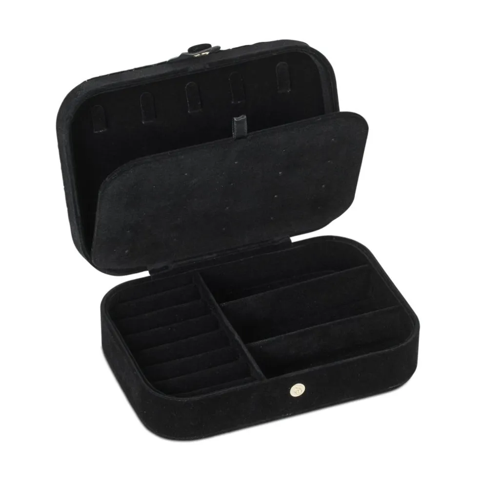 Du vil elske dette fine samt luksuriøse smykkeskin for dens gode indvendige organisering samt at den let kan tages med på enhver rejse, men også ideel til at have stående der hjemme. Perfekt som gave til en du holder af.