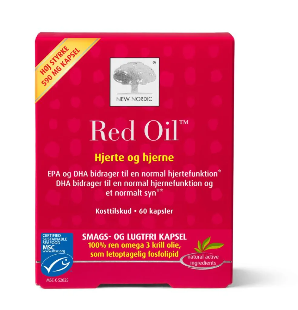 Krill olien indeholder fra naturens side astaxanthin, som giver olien dens karakteristiske naturlige røde farve. Red Oil kapslen er fremstillet med en ny indkapslingsteknologi, der gør den total lugtfri.