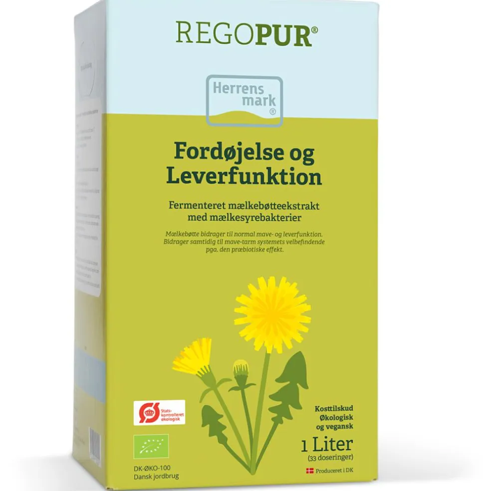 Det fermenterede mælkebøtteekstrakt fra Herrens Mark, REGOPUR er et ikke-pasteuriseret kosttilskud, lavet på pressesaft fra mælkebøtten.