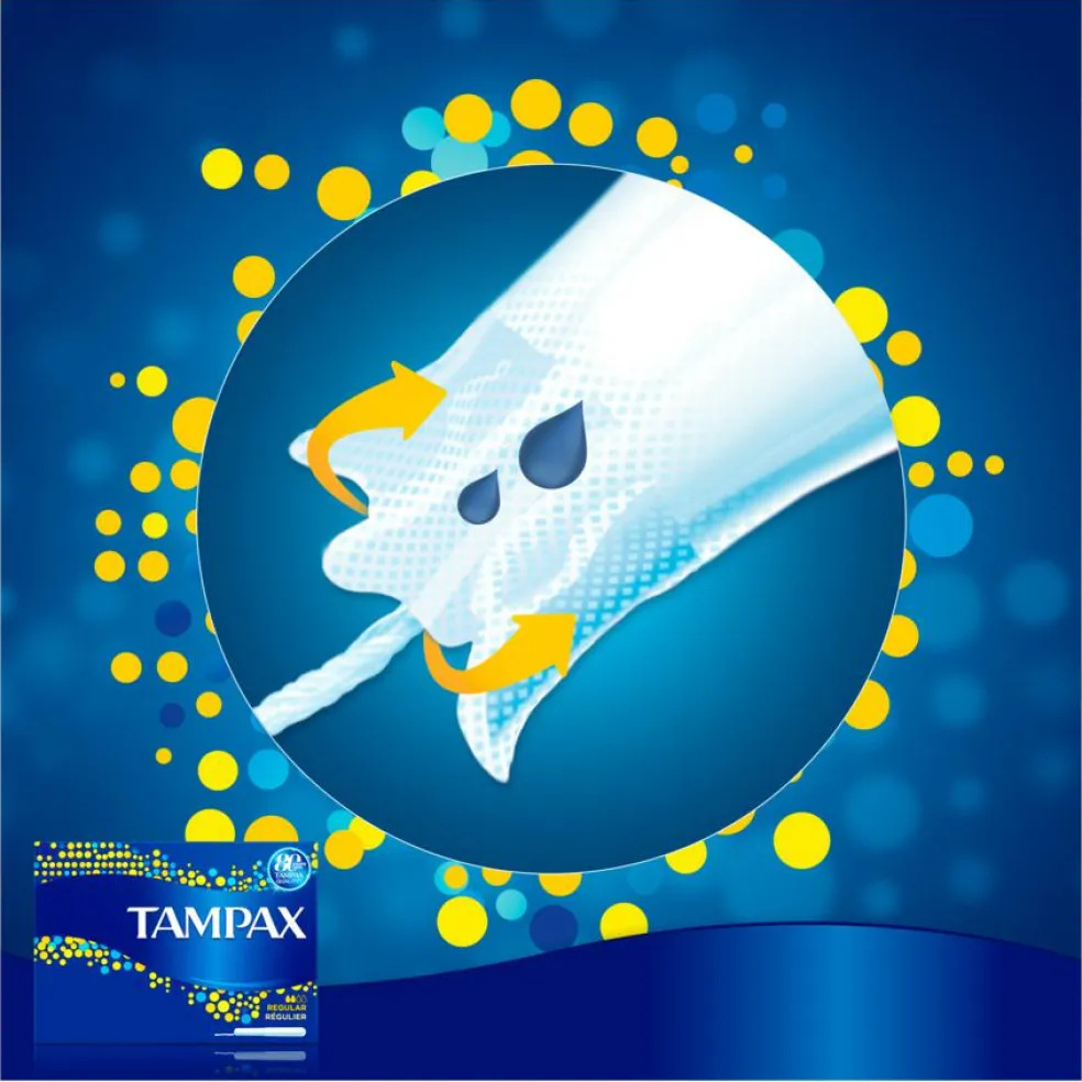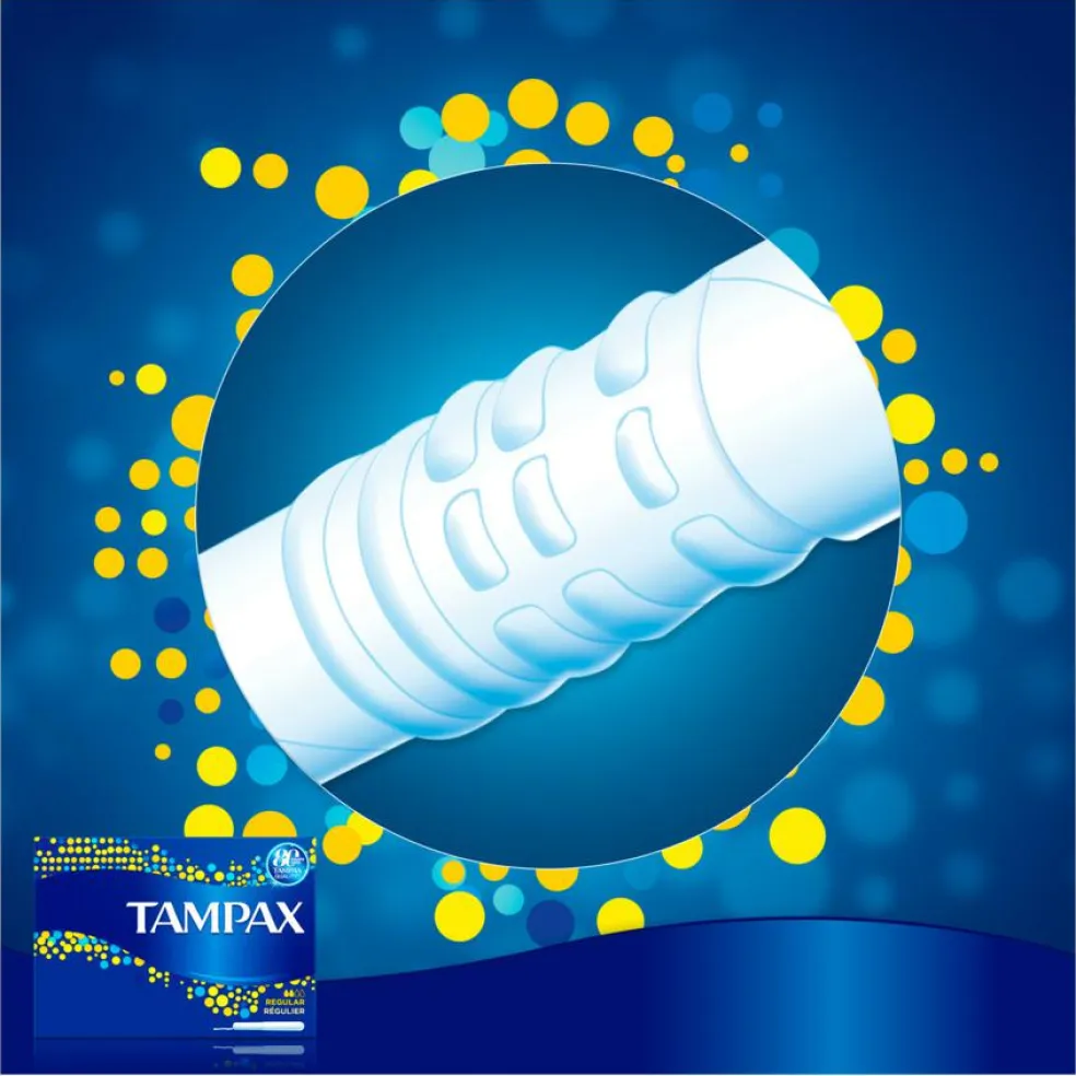 Tampax tamponer har en sugende kerne og et Anti-leak protective skirt, som giver yderligere backup-beskyttelse, og et indføringshylster med antislip-greb for nem indføring.