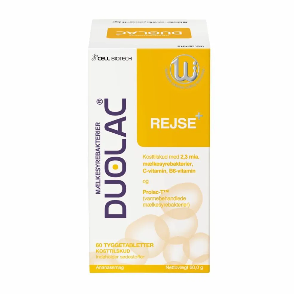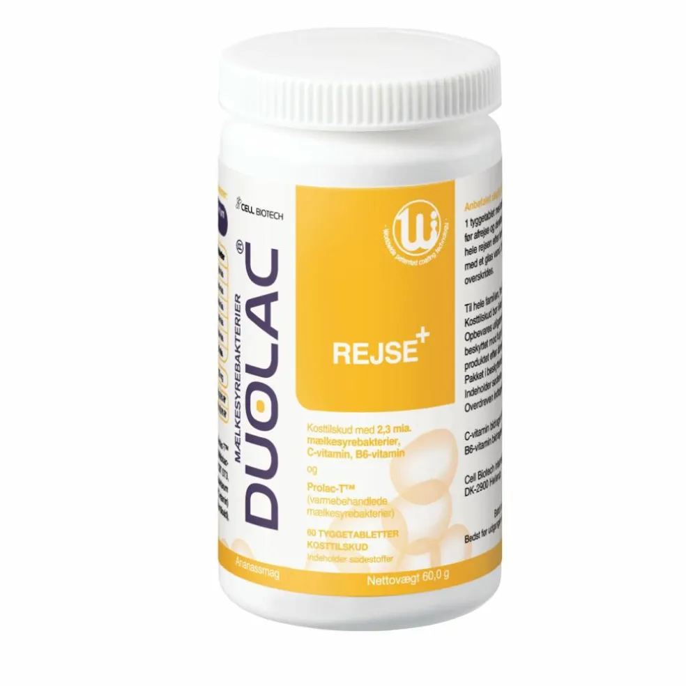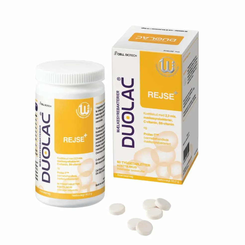 DUOLAC REJSE+ giver dig et kendt produkt, et tilskud af mælkesyrebakterier, PROLAC-T™, C-vitamin og B6-vitamin i én tablet.