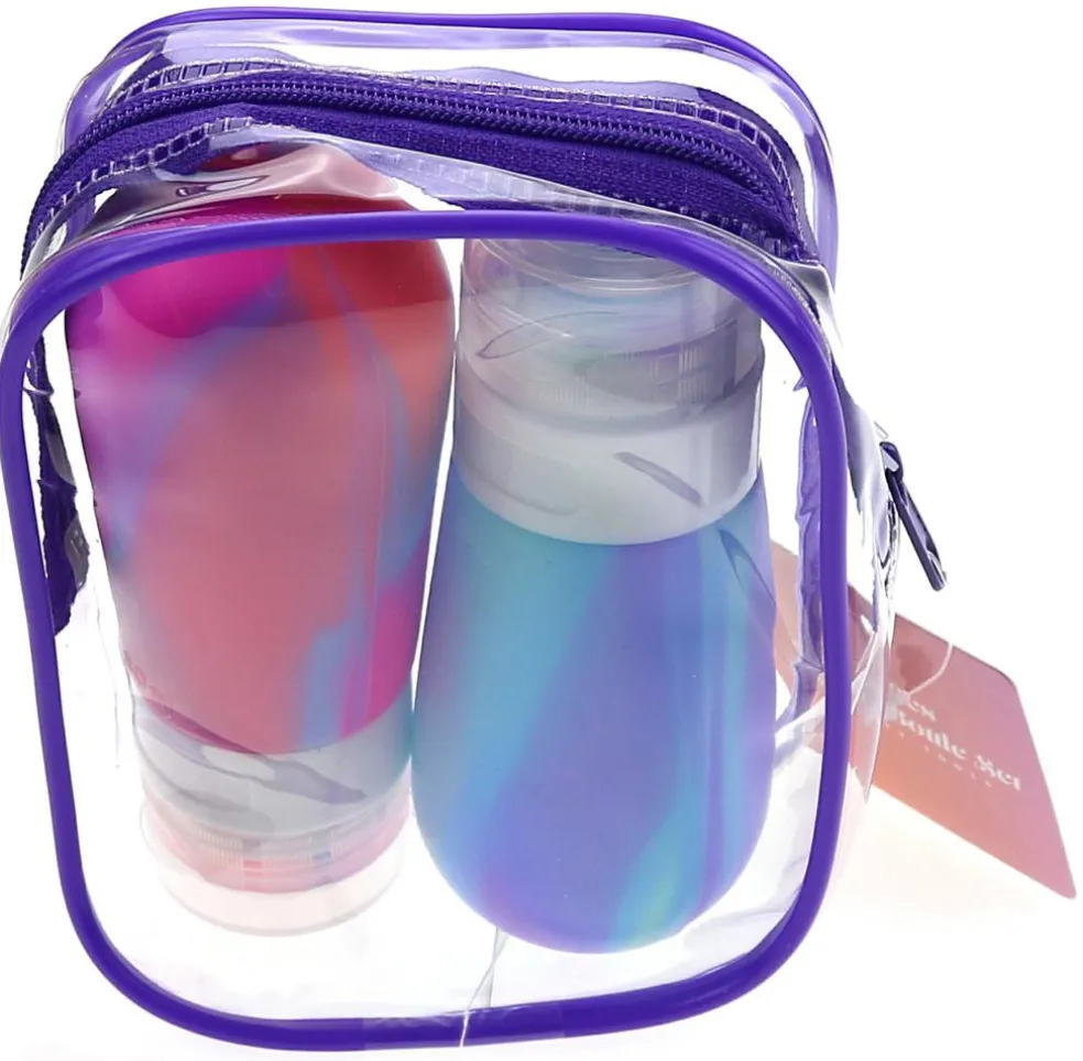 Gør dine rejser lettere med disse fleksible rejseflasker i silikone. Sættet indeholder 2 flasker, der er ideelle til opbevaring af shampoo, balsam, lotion og andre væsker – og med deres smarte design er de nemme at opbevare og anvende på farten.