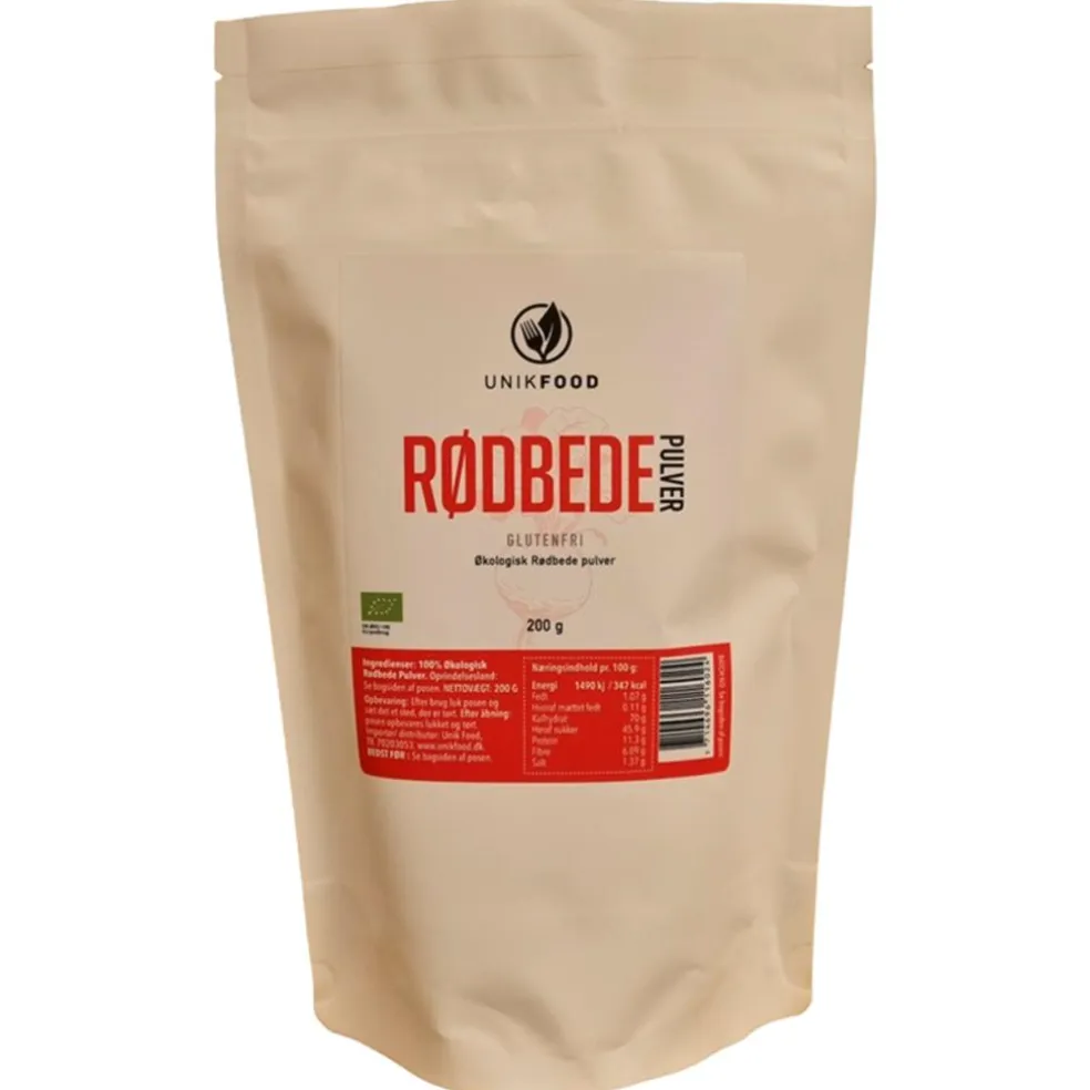 Økologisk Rødbedepulver. Rødbede pulver kan bruges til shots, i smoothies, på morgenmaden eller direkte i madlavningen m.m.