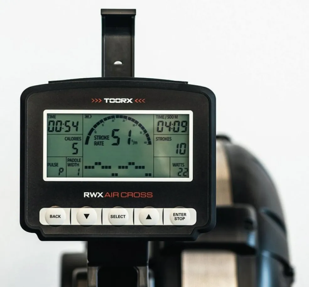 Computeren viser: Træk pr. minut Total antal træk Kalorieforbrænding Tid Distance Puls 500/TM Watt. Bremsesystem: Luftmodstand