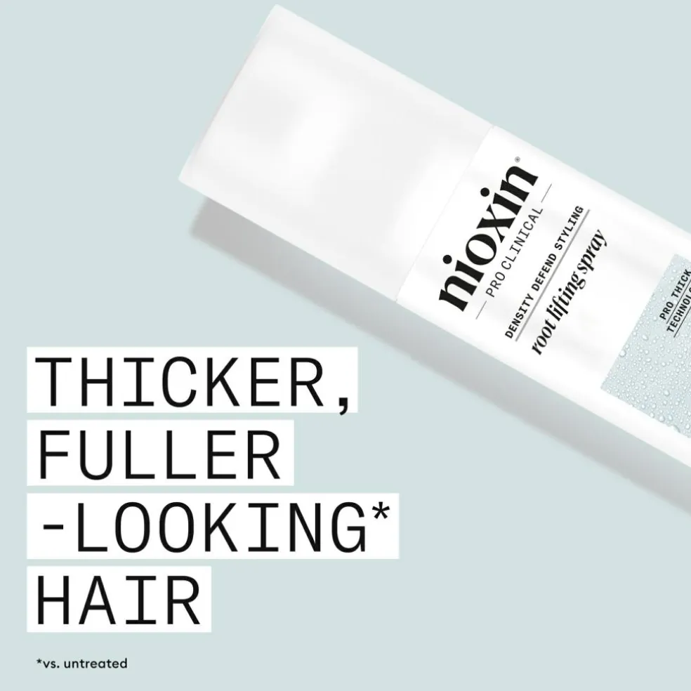 Nioxin Root Lifting Spray indeholder ProThick Technology, et professionelt kompleks af fortykkende polymerer, der forlænger og danner bindinger mellem hårfibrene, hjælper med at øge hårets diameter og samtidig beskytter dets tæthed.