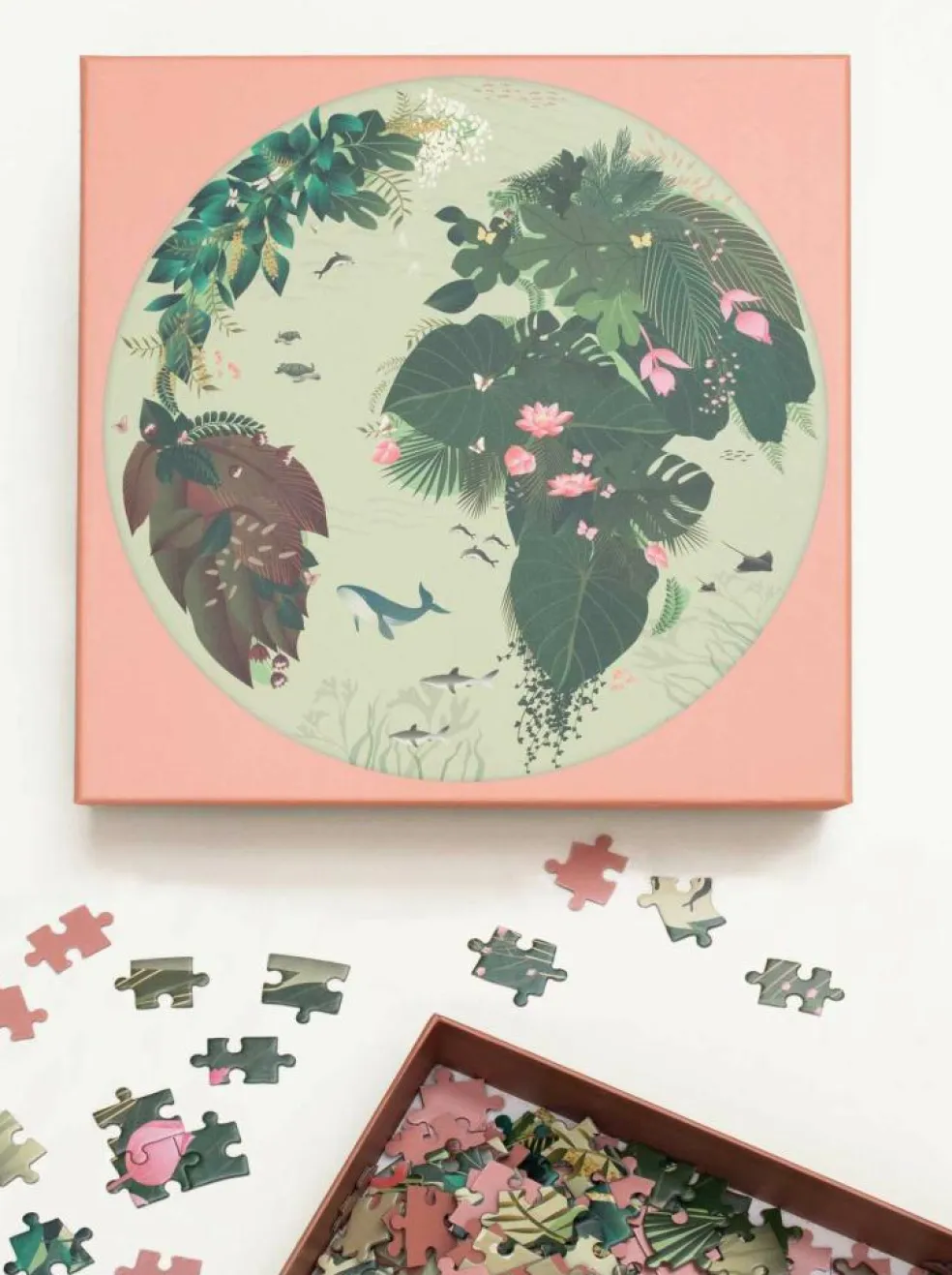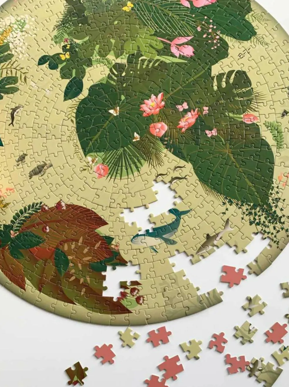 Puslespillet afslører brik for brik vores planets land- og vandområder. Vidste du, at de planter og dyr, du finder på puslespillet, hører til i det område, de er placeret?