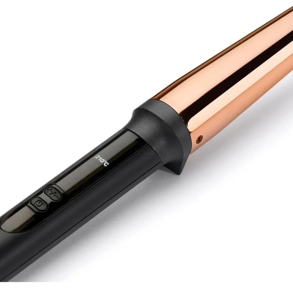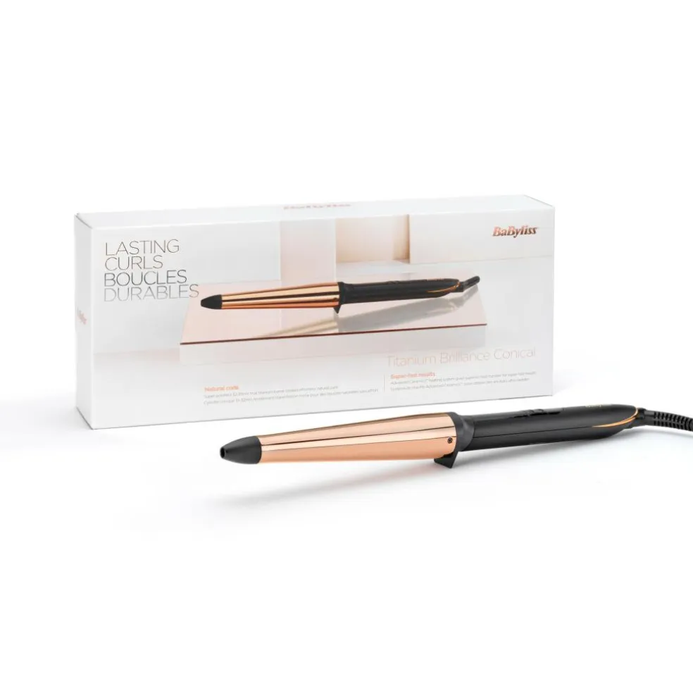 Skab smukke, glansfulde krøller med BaByliss Salon Brilliance Conical. Den højpolerede titaniumcylinder og Advanced Ceramics™-teknologien giver dig salonværdige krøller, der holder på formen.