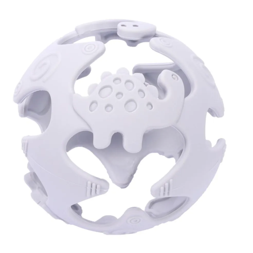 Blød og flexibel silikone gør bolden ekstra behagelig at lege med, og de forskellige teksturer masserer nænsomt babys ømme gummer under tandfrembrud.