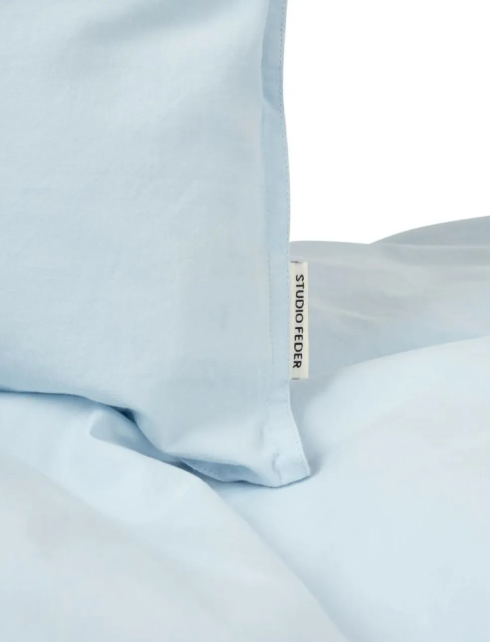 Pudebetræk i 60×63 cm med konvolutlukning og dynebetræk i 140×200 cm med knap lukning.