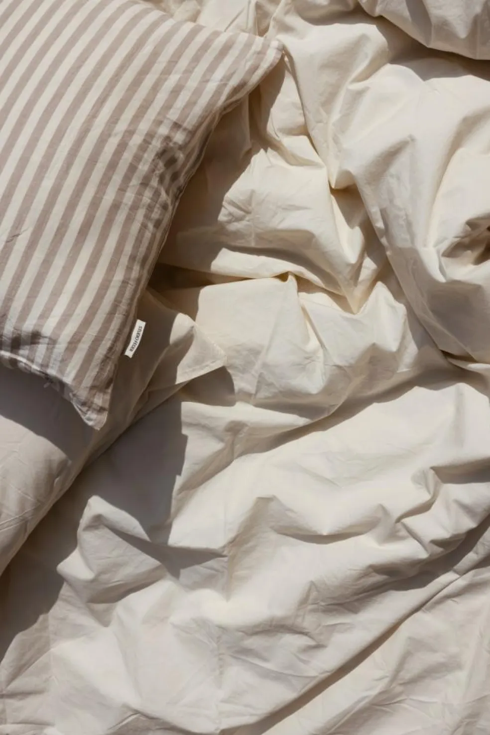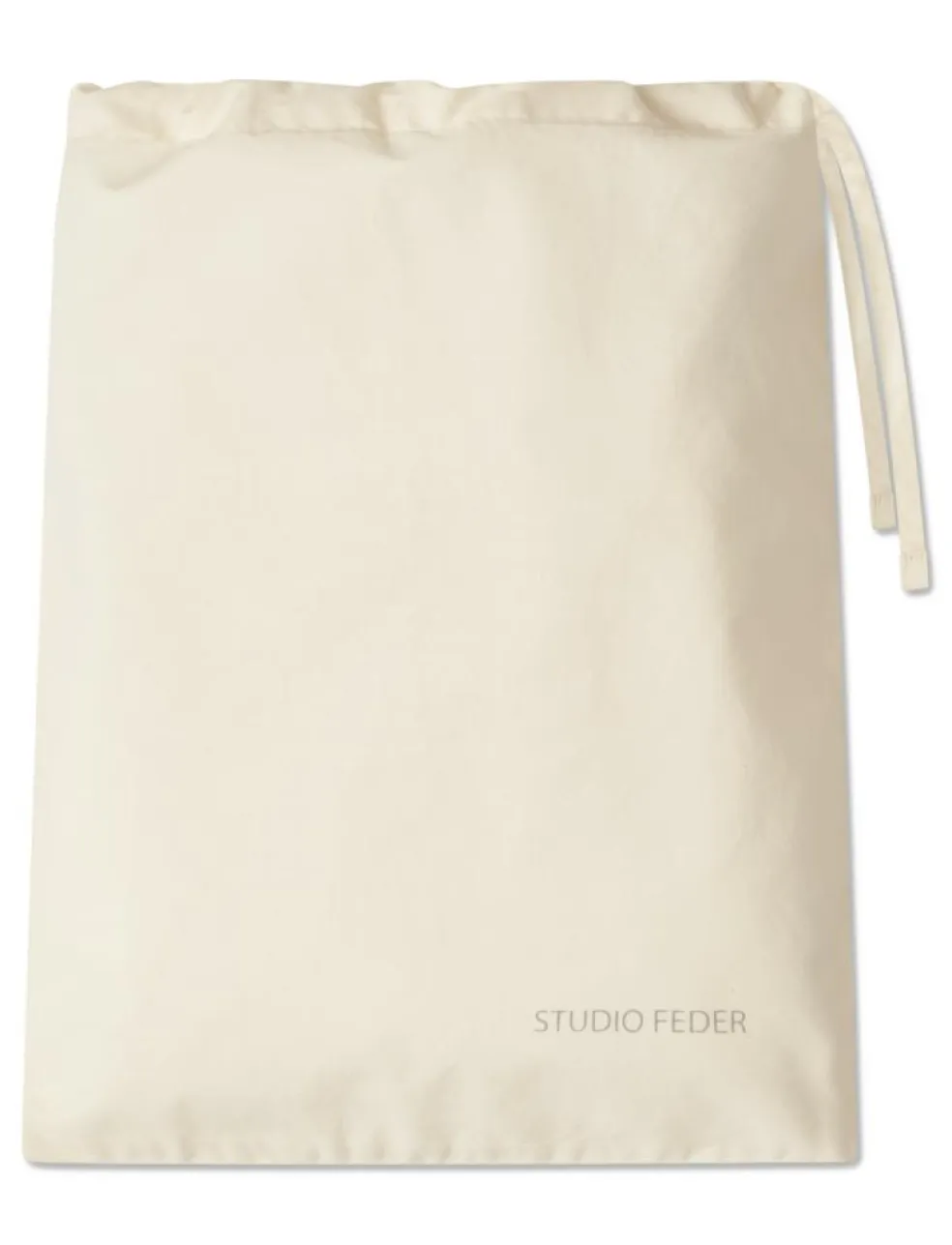 Sengetøjet leveres i en matchende stofpose, der lukkes foroven med bindebånd.
