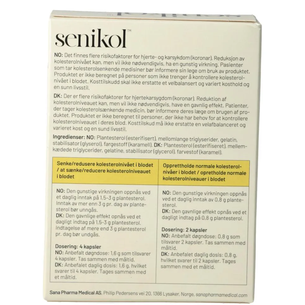 | Vedligeholde normale kole- sterolniveauer i blodet | 0,8 g | 2 kapsler/dag |