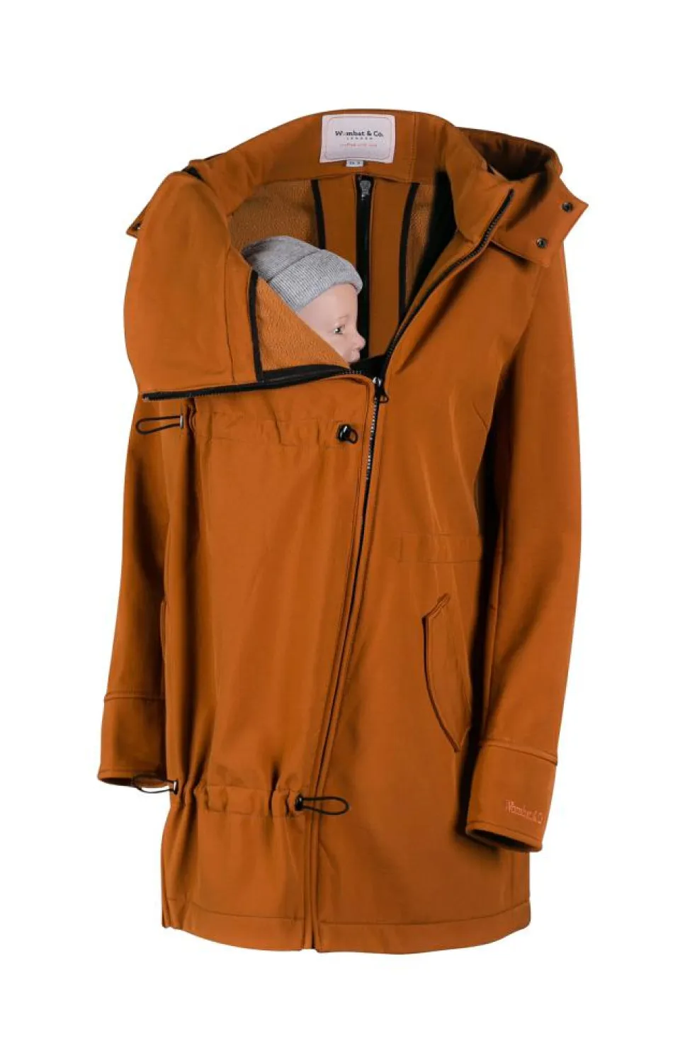 En 4-i-1 jakke, der passer over enhver bæresele eller vikle, uanset om du bærer på front eller ryg, takket være det ekstra panel. Uden panelet kan den bruges som en almindelig jakke så længe du vil.