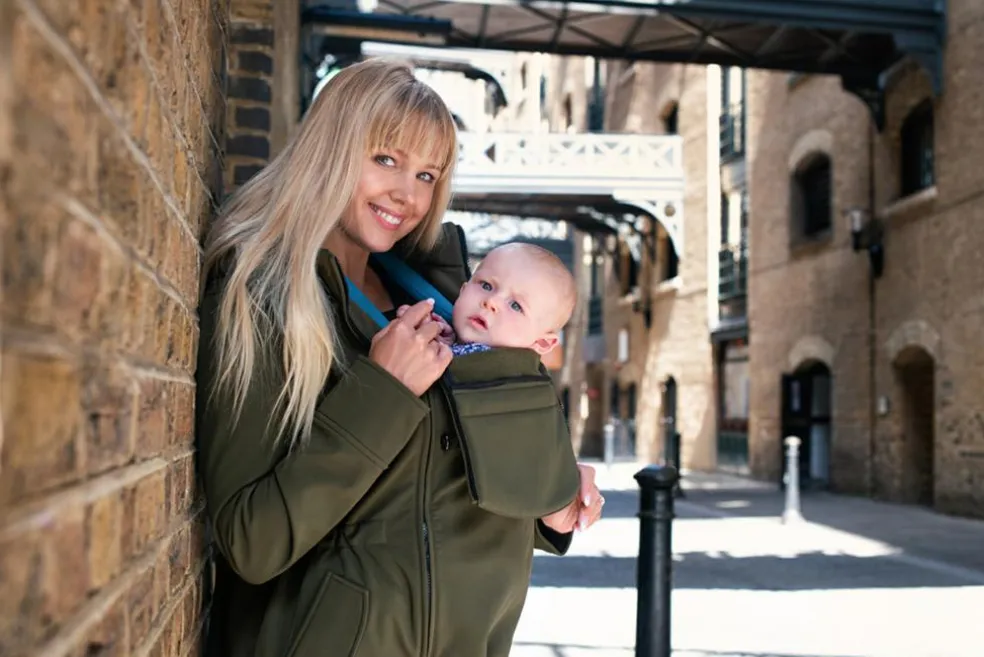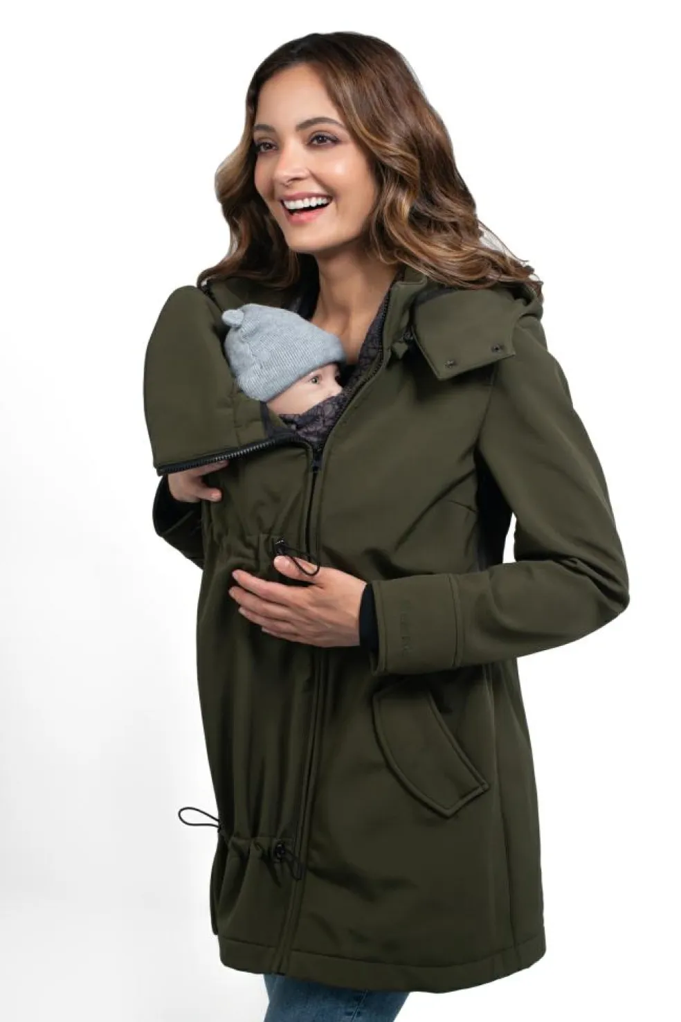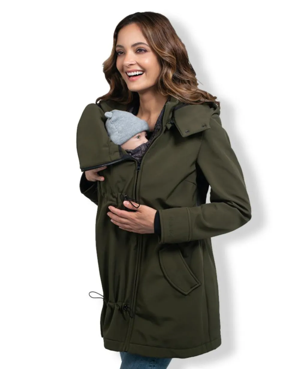En 4-i-1 jakke, der passer over enhver bæresele eller vikle, uanset om du bærer på front eller ryg, takket være det ekstra panel. Uden panelet kan den bruges som en almindelig jakke så længe du vil.