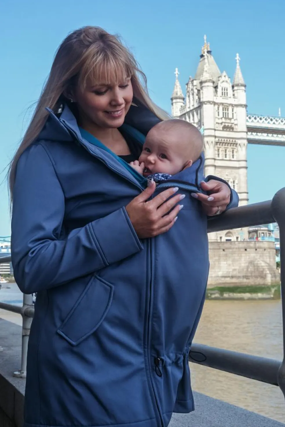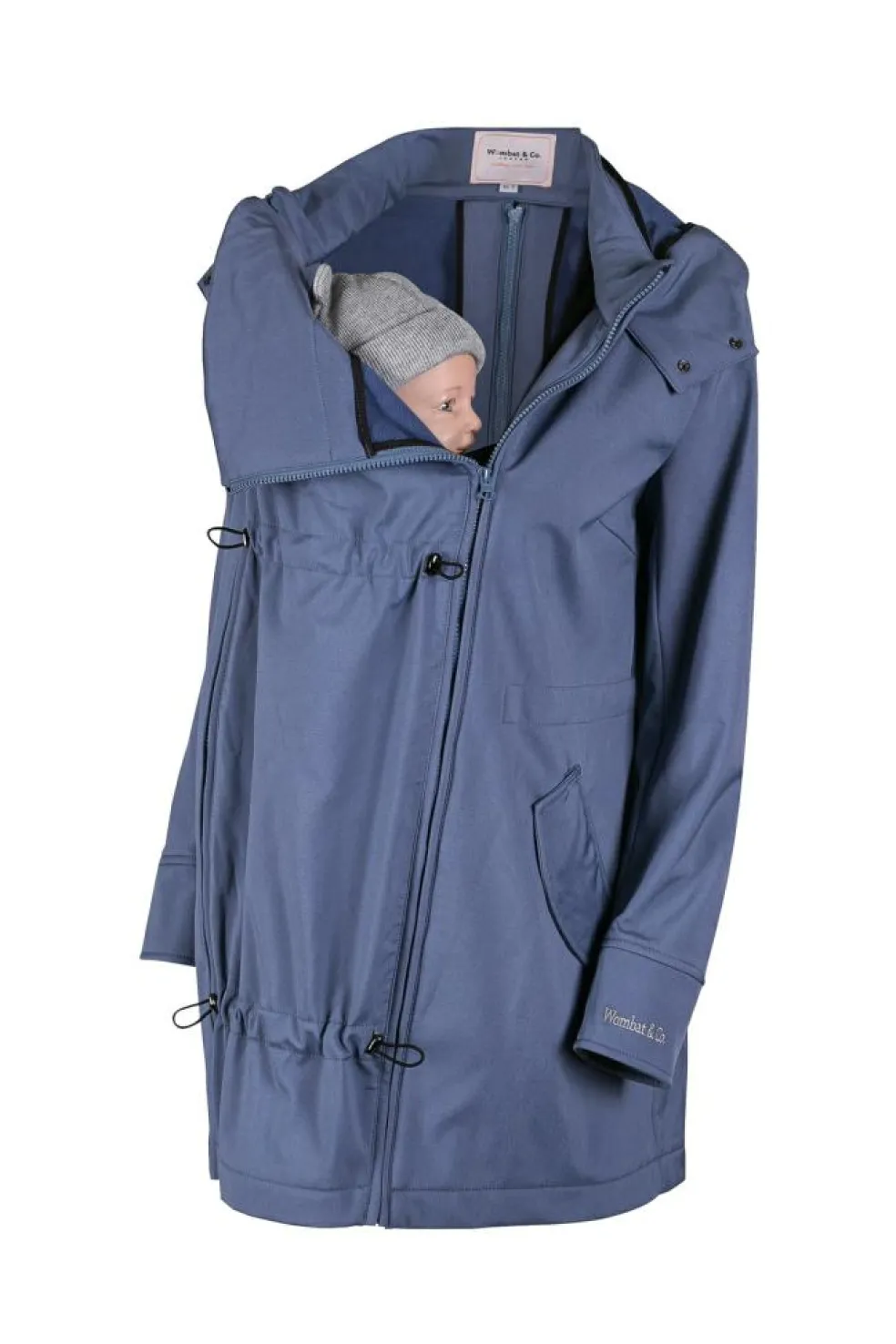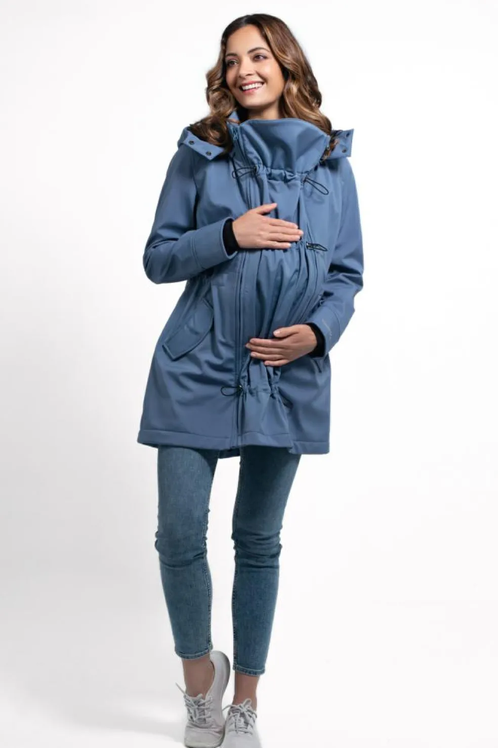 En 4-i-1 jakke, der passer over enhver bæresele eller vikle, uanset om du bærer på front eller ryg, takket være det ekstra panel. Uden panelet kan den bruges som en almindelig jakke så længe du vil.