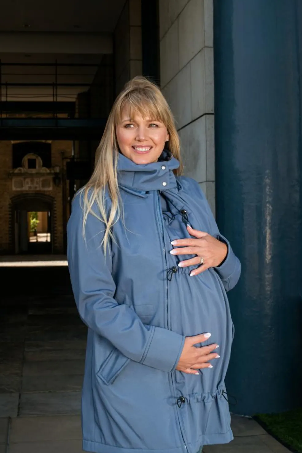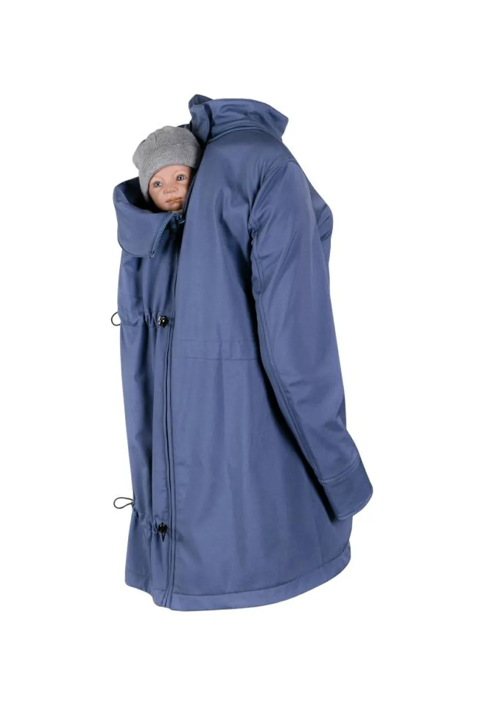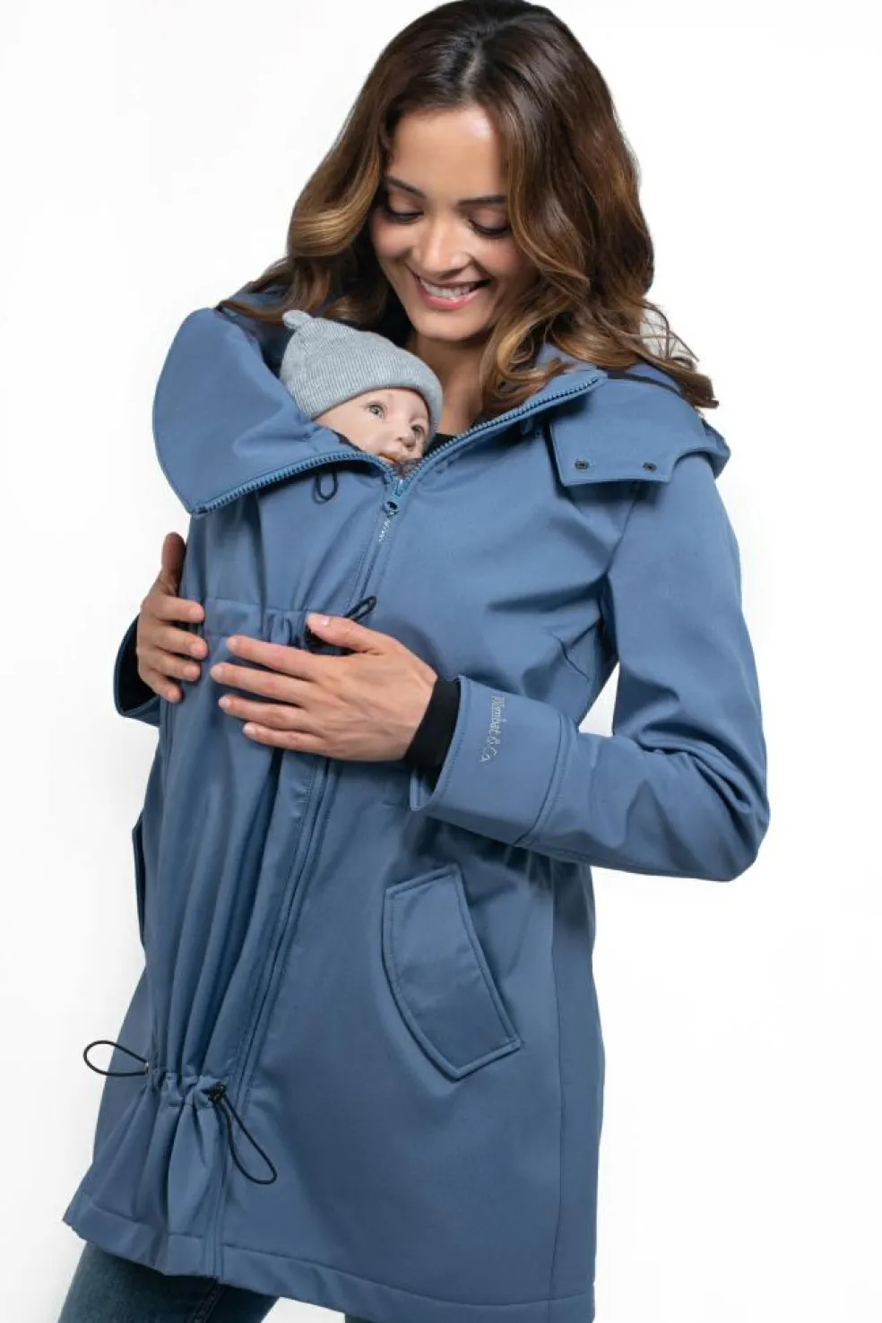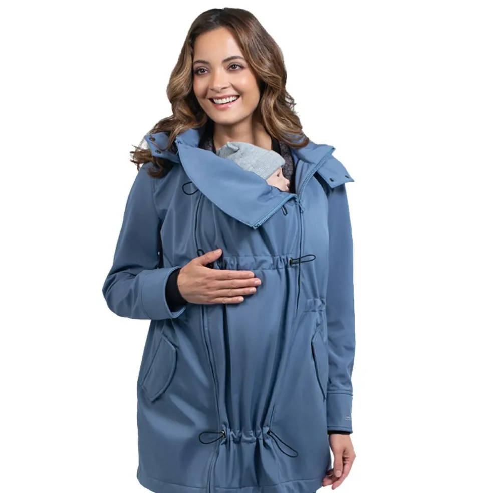 En 4-i-1 jakke, der passer over enhver bæresele eller vikle, uanset om du bærer på front eller ryg, takket være det ekstra panel. Uden panelet kan den bruges som en almindelig jakke så længe du vil.