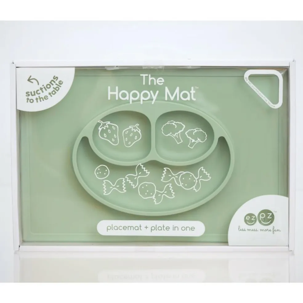 Happy Mat suger sig helt fast til bordet således at barnet ikke kan tippe eller løfte selve tallerknen. Fantastisk at skabe sjove, spændende og dekorative måltider til barnet.